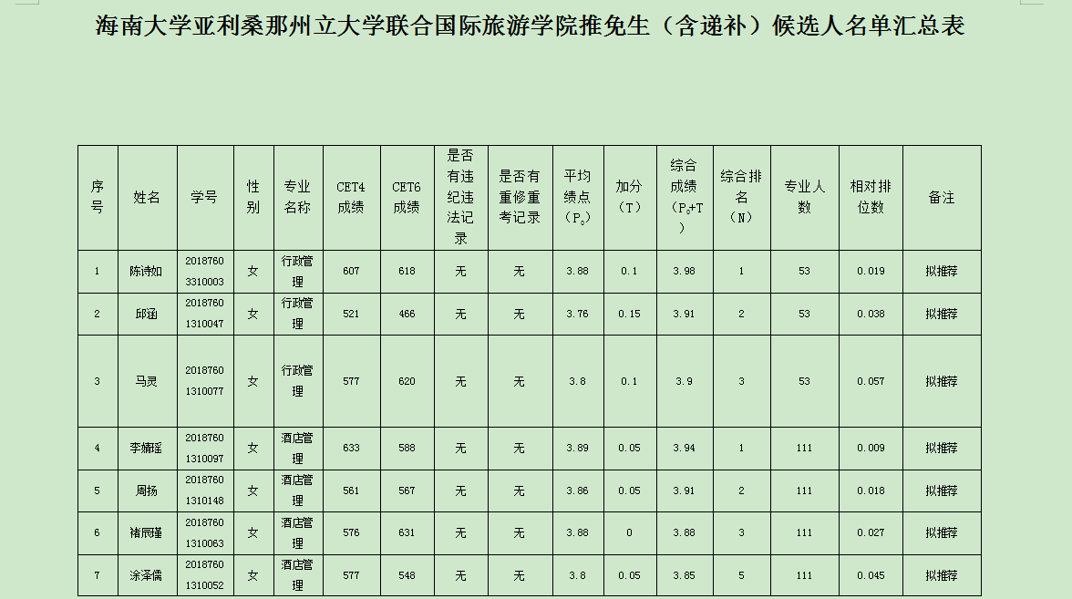 附件 金沙js5588亚利桑那州立大学联合国际旅游公司最新推免生(含递补)候选人名单汇总表