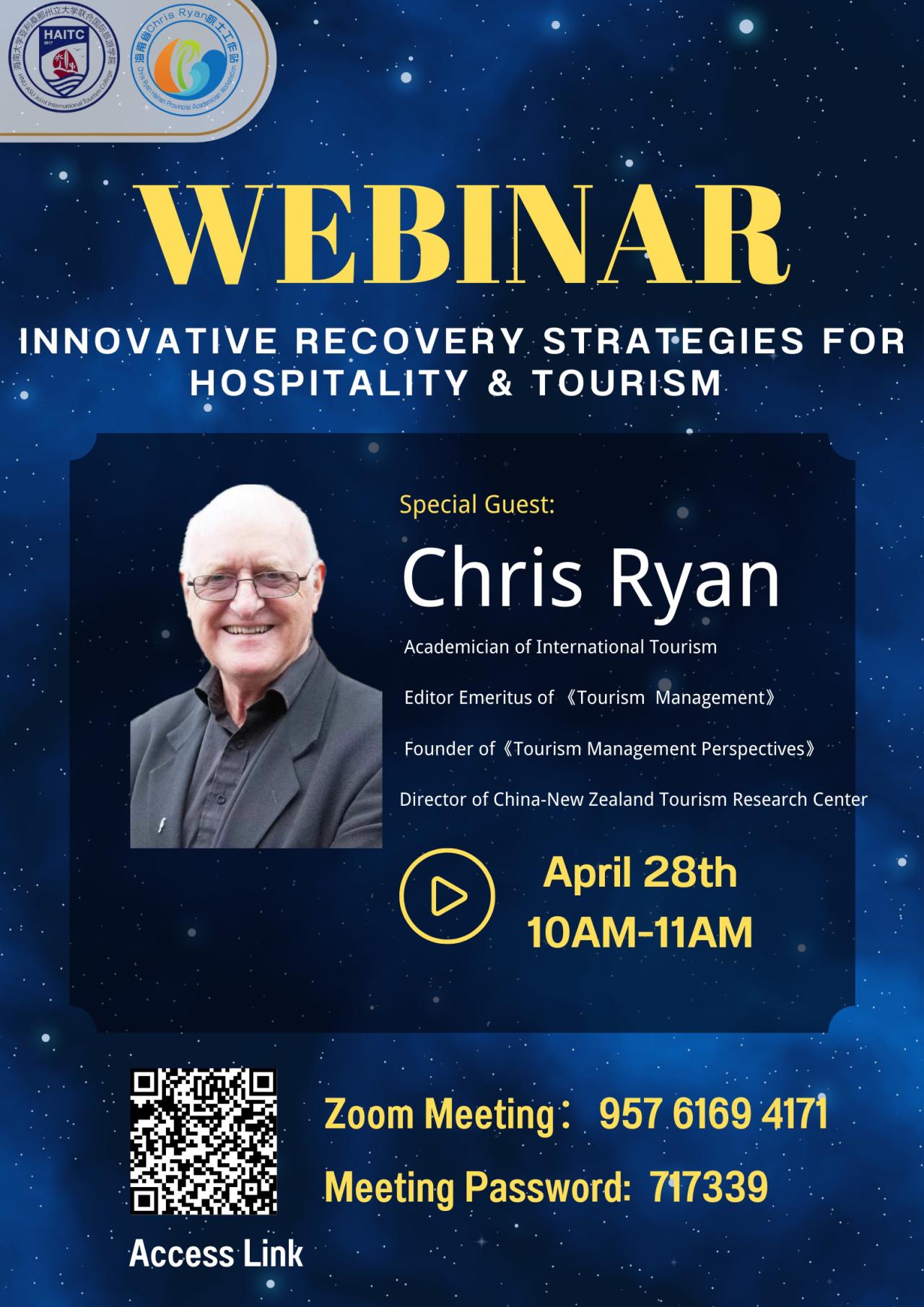 Chris Ryan is Professor of Tourism at the University of Waikato, New Zealand, where he is the director of the China-New Zealand Tourism Research Unit. For 25 years he was editor of Tourism Management (IF>10), for 5 years was simultaneously editor of Tourism Management Perspectives which he initiated, and 3 years ago started Tourism Critiques: Practice and Theory. As a researcher he has published more than 200 refereed journal articles, and has edited/co-authored 14 books. His most recent book was published in 2020, namely An Advanced Introduction to Tourism Destination Management. In the past he was appointed by New Zealand as an advisor to the APEC Tourism Ministers, he has reported to the UNWTO on two of China's Sustainable Monitoring Centres, worked on a report on Huangshan for the Huangshan Scenic Committee, undertaken advisory work for the New Zealand governmental bodies, the Australian Bureau of Tourism Research, for various New Zealand organisations and a is a Advosry Board member for the Hamilton-Waikato Regional Tourism Organisation.