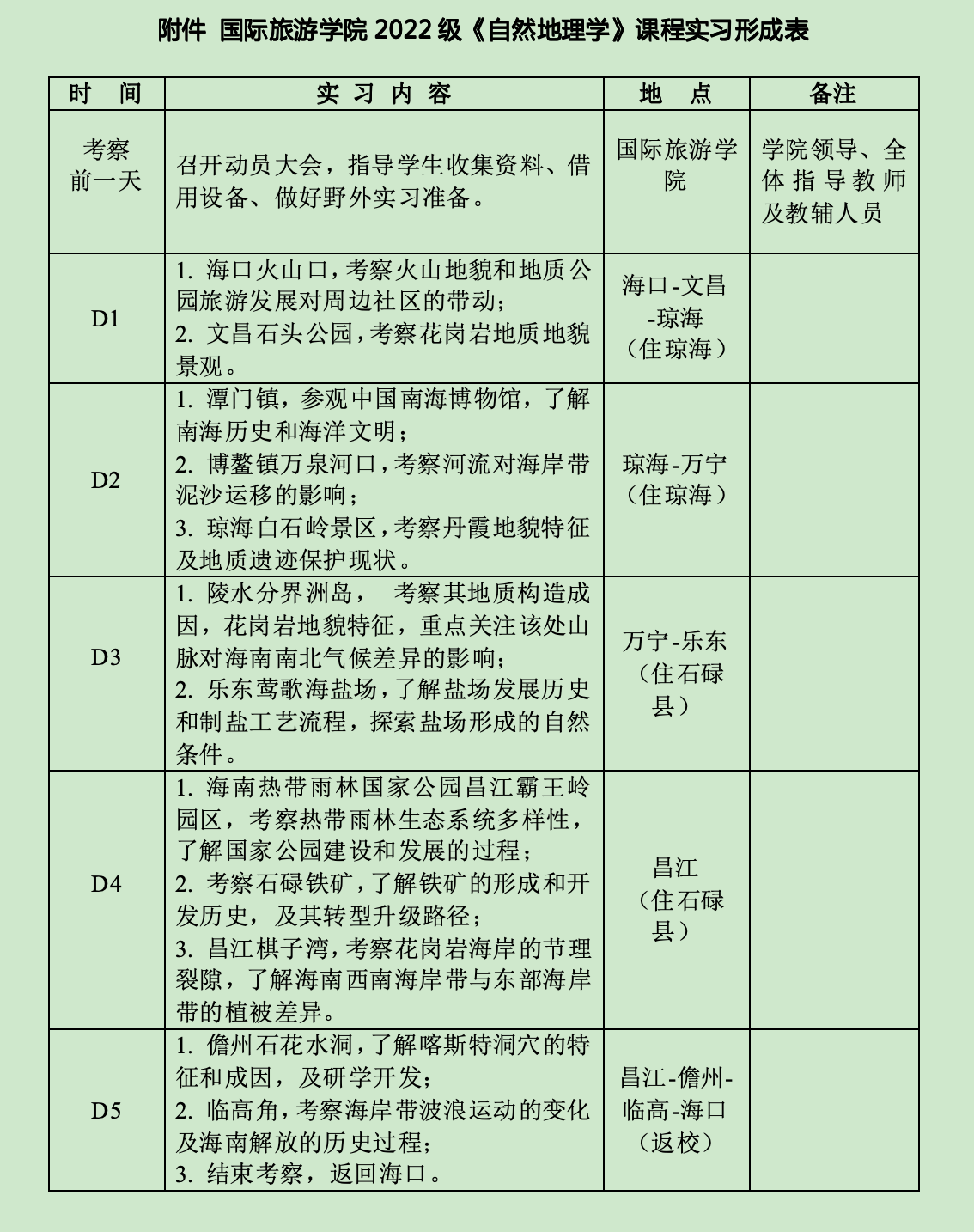 附件:国际旅游公司2022级自然地理学课程实习行程表
