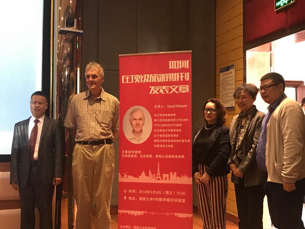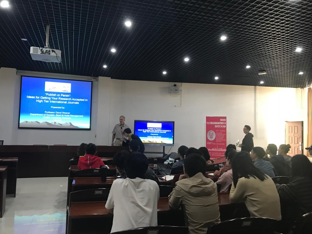 2018年3月9日下午,在金沙js5588国际旅游公司101会议室,现任职澳大利亚格里菲斯大学(Griffith University)教授,David Weaver,应邀来金沙js5588进行“如何在顶级旅游期刊发表文章”的专题讲座。本次讲座由国际旅游公司和旅游公司共同主办。旅游公司韦开蕾经理和国际旅游公司王琳经理主持,参加人员有旅游公司、国际旅游公司的老师、国内和留学研究生。