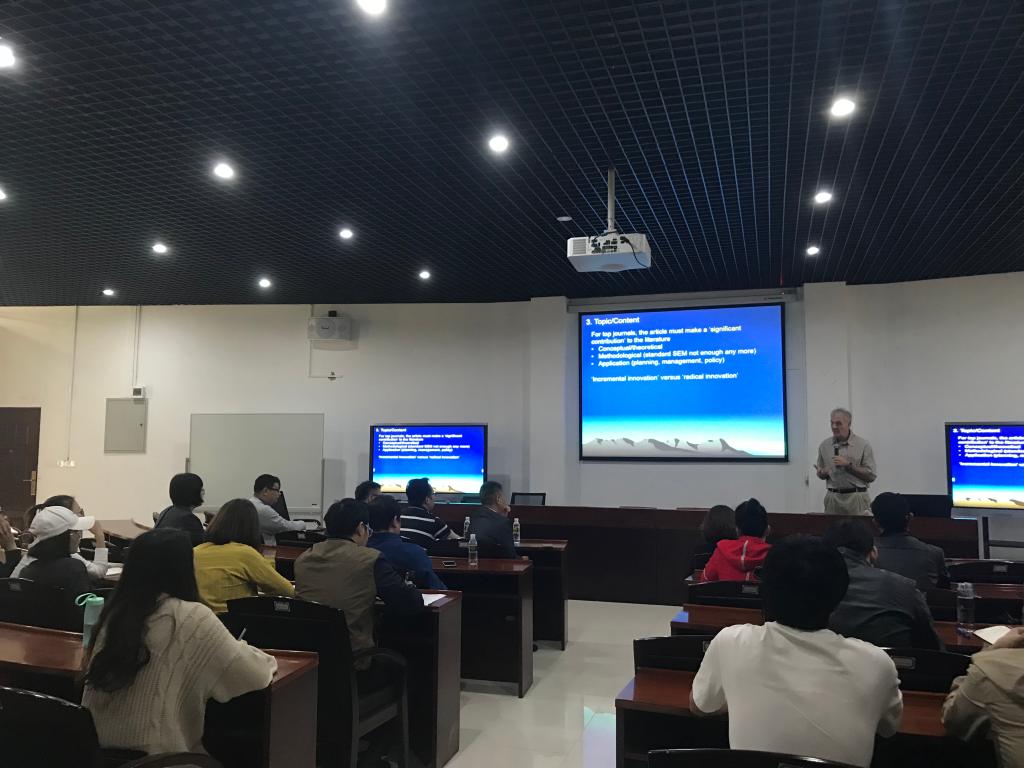 David Weaver教授围绕“如何在高端刊物发表文章”这个主题以严谨、专业、细致的学者风格为在座的老师和员工详尽地进行了讲解。讲解的内容以国际论文写作要求分为了8个部分:(1)Publishing Context;(2)Publication outlet selection;(2)Topic/content;(3)Manuscript structure;(4)Dancing with the journal;(6)Before submitting;(7)General principles of submission;(8)Responding to feedback。在David Weaver教授讲座后,金沙js5588旅游公司宋子斌教授进行了总结点评并引导在座师生与David Weaver教授互动交流。在互动交流的环节中,老师与同学都积极向David Weaver教授请教问题,David Weaver教授对所有问题都进行了耐心、睿智、有趣的解答。