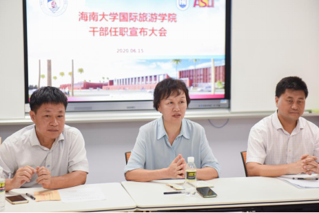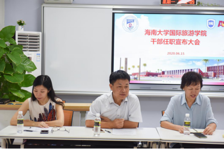 2020年6月16日,国际旅游公司在102教室召开干部任职宣布大会。金沙js5588党委组织部副部长李锋、国际旅游公司全体在校院领导出席会议,党总支委员、各科室负责人和全院教职员工参加会议,会议由经理王琳主持。