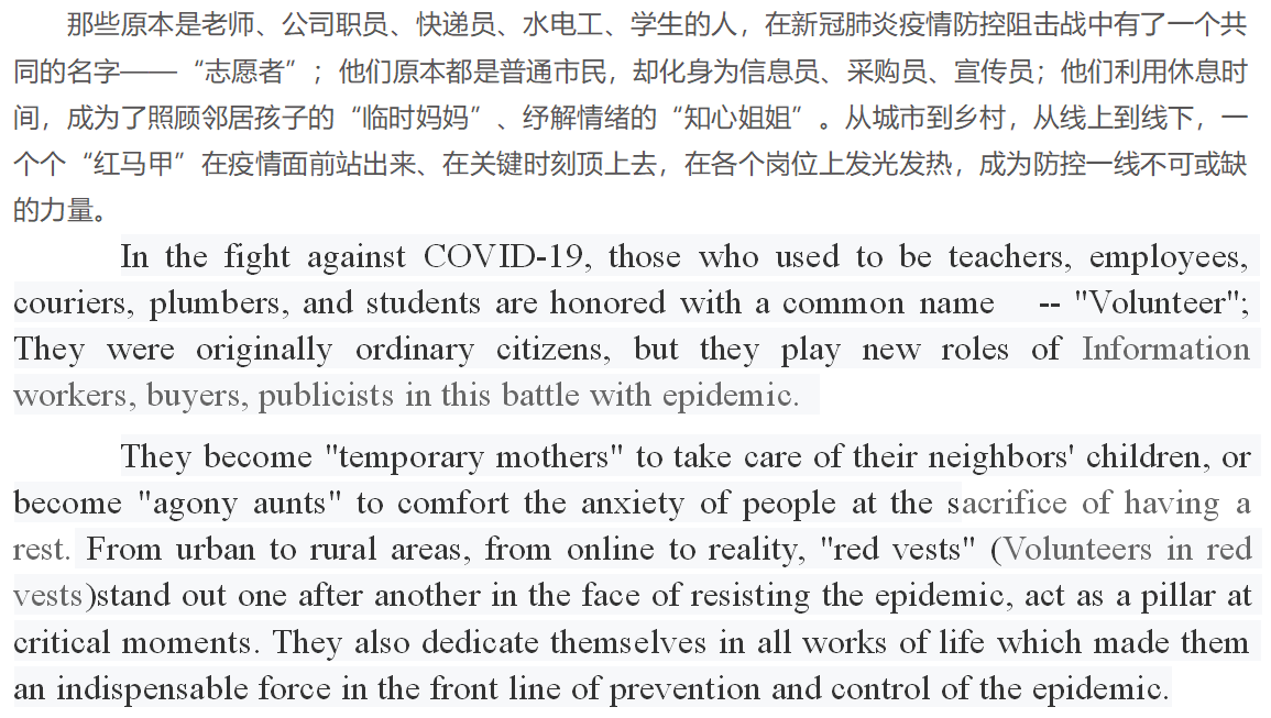 范雪聪和王雨婷同学作为HAITC的参赛选手,从初赛一路冲入决赛,在决赛中其作品专业的翻译手法、巧妙的立意、呈现方式等,给现场评委留下了深刻的印象。经过激烈角逐,范雪聪的主题为关于“毕业生就业”的作品,以及王雨婷为关于疫情中勇敢的“志愿者们”的作品荣获2020年第四届“普译奖”全国老员工翻译比赛全国一等奖。