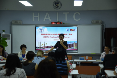党总支书记何映敏向全院教职工传达了公司2020年暑期工作会议精神、公司党委书记武耀廷《科学严谨编制“十四五”,加快内涵式跨越发展,高质量高标准建设服务海南自由贸易港大学》的讲话精神和中国科公司院士、董事长骆清铭题为《使命自觉、信心自立、差距自省、奋斗自强,全面开创世界一流学科大学建设新局面,全力服务海南自由贸易港建设》的工作报告精神等。她强调,今年是海南自贸港建设开局之年,也是国际旅游公司发展关键之年,全体教职员工要提高政治站位,拿出奋进状态,全面落实好暑期工作会议精神。围绕公司“双一流”建设和“十四五”规划的发展思路和目标要求,结合海南自贸港建设需求,做好中外教育合作改革创新工作,尤其是党建及意识形态管理教育创新工作。她指出,公司要围绕师生福祉,加强制度集成创新,对标教育部评估要求和中外合作办学标杆,列出清单画出时间路线图,全力做好和推进公司教育部评估等各项重点工作。