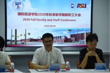 9月8日下午,国际旅游公司在田家炳楼102召开新学期全院教职工大会,传达公司暑期工作会议精神并部署新学期工作。公司党委常委、副董事长叶光亮,经理王琳,党总支书记何映敏,副经理李枚珍,班子成员、副处级辅导员符涛出席会议,全体在校中外教职工参加会议,会议由符涛主持。