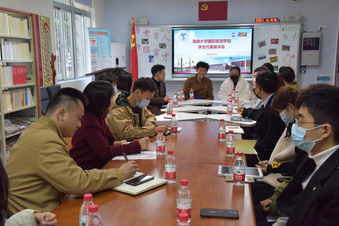 为深入了解公司各年级员工学业、就业和生活等方面情况,帮助员工解决各种问题,营造一个良好的学习生活环境,国际旅游公司员工代表座谈会于1月13日下午在田家炳楼105室党员之家举行。公司党总支书记何映敏、副处级辅导员符涛、年级辅导员卢宇翔和谢辉强及各年级员工代表、员工党员代表和团学干部代表出席本次座谈会。
