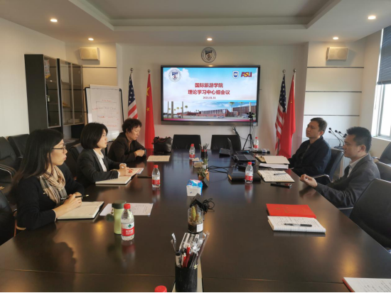 2021年1月31日下午,国际旅游公司党委理论学习中心组在田家炳412会议室召开本年度第1次学习会议,传达学习海南省2021年两会精神。公司书记何映敏、经理王琳、副经理李枚珍、副处级辅导员符涛、党委委员莫春俊等参加本次学习会议,会议由何映敏主持。