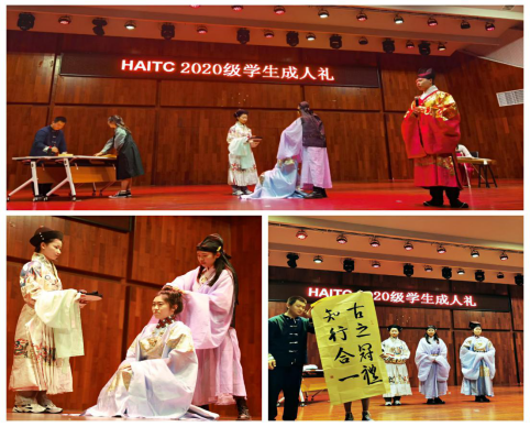 成人礼现场节目形式新颖、多样,活动通过冠礼成人表演、卫国戍边主题朗诵、现场书法展示等,引导新生厚植爱国情怀、坚定理想信念、扣好人生第一粒纽扣。不仅有底蕴深厚的中国古代文化展演,同时还有国际旅游公司Yana副教授讲述国际成人礼仪式;韩舞《black mamba》动感十足,燃爆全场;《那些你很冒险的梦》、《你的答案》等歌曲寄托了同学们对未来的期冀,同时也勉励同学们突破迷雾找到属于自己的未来答案。活动最后,同学们轮流上台将写给自己四年后的信投入邮筒中,并合唱《夜空中最亮的星》,为本次成人礼活动画上完美的句号。