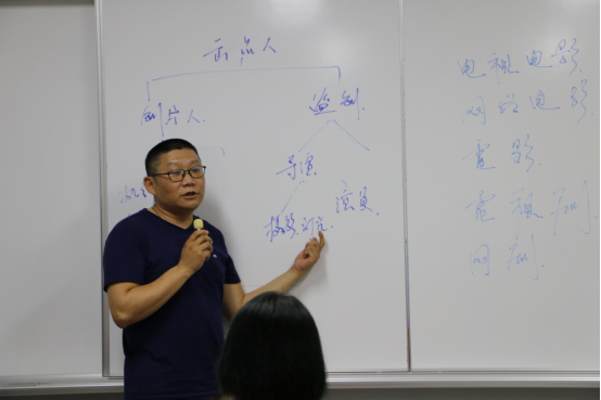 报告会第二场由著名制片人、执行制片人佟兆新老师主讲,佟老师从电影的分类和电影的盈利模式,以及电影中职位分布等方面为切入点阐述了影视剧制片人的责任与义务。