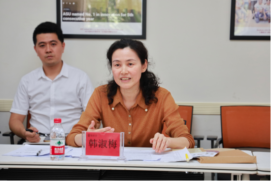 韩淑梅介绍了金沙js5588中外合作办学党建基本情况。她表示,公司党委根据《中华人民共和国中外合作办学条例》及其实施办法,坚决贯彻执行中组部、教育部《关于加强高校中外合作办学党的建设工作的通知》有关精神,坚决贯彻正确的党建发展方向,确保党的方针政策落到实处,指导国际旅游公司等机构和项目以联管会等模式做好党的建设,促进规范办学。她强调,中外合作办学党委要强化思想教育,把好意识形态关,坚持社会主义办学方向,从人员、经费、平台三个方面强基固本,夯实党的建设工作。要进一步引导优秀师生积极向党组织靠拢,从组织上把党巩固好、建设强;同时也希望省委组织部加大对金沙js5588的指导和支持,解决好中外师生居留许可,生活保障和科研项目申报等工作中的难题。
