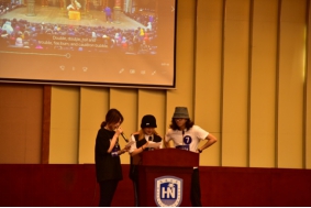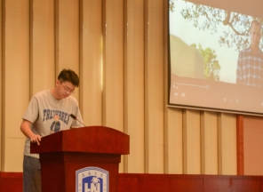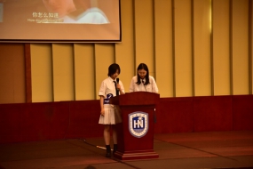 首先是比赛第一部分,由嘉宾抽取每班两位同学进行英文独白朗诵。抽中的两位同学从已准备好的十篇独白中随机选取并上台朗诵。上台朗诵的同学们模仿的惟妙惟肖,为班级争光,谱写生动的乐章。