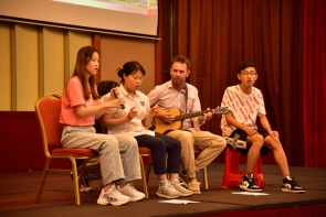 接着迎来串场节目。分别是HAIPRIL带来的热舞和Brian老师以及几位同学的吉他弹唱。他们的节目获得了同学们热情的掌声,也展现了国旅师生的多才多艺。