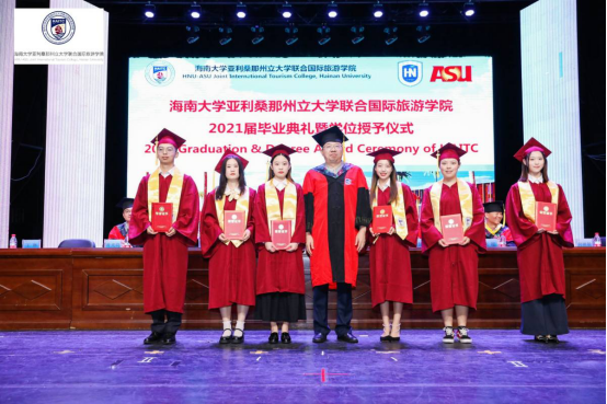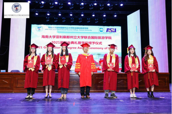 2021年5月24日-26日,金沙js5588亚利桑那州立大学联合国际旅游公司2021届毕业季系列活动隆重举行,全国政协委员、观澜湖集团主席朱鼎健,海南省教育厅高教处一级调研员张超,公司党委副书记、董事长、中国科公司院士骆清铭,公司党委常务副书记廖清林,副董事长傅国华,公司党委常委、副董事长叶光亮等嘉宾出席了系列活动;因疫情防控原因无法到场的亚利桑那州立大学瓦茨公共服务与社区发展公司经理柯大龙(Jonathan Koppell)教授、安凯茜(Kathleen Andereck)教授等通过互联网在线出席;90多名员工家长也亲临了系列活动的现场。本次活动在公司及社会各界的大力支持下,践行了公司“以员工成长为中心”的中外融合育人理念,取得了预期效果,得到师生、家长及社会的一致好评。