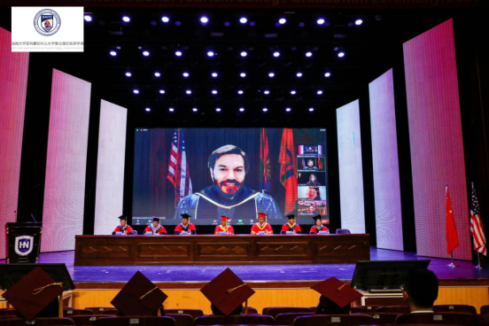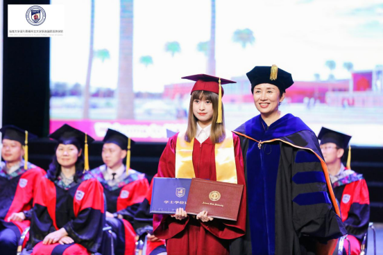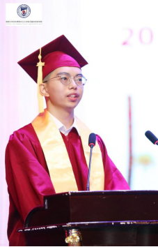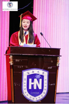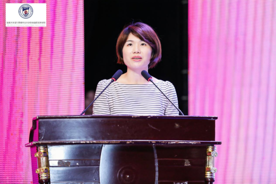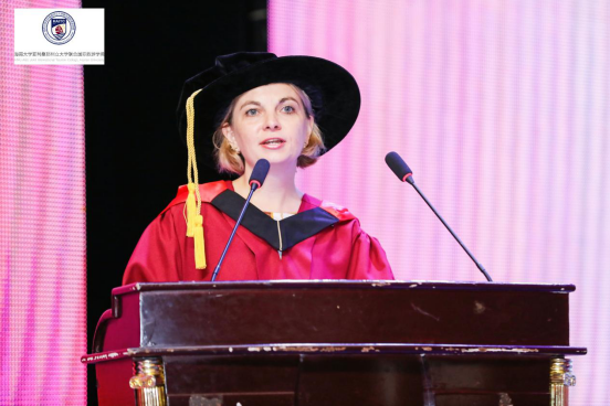 毕业生代表王梦晴、初立鑫,教师代表Dr. Yana Wengel等在接下来的环节中依次发言。王梦晴讲了自己跟导师从事研究并在国际期刊发表论文的珍贵经历,初立新鑫分享了自己在开学典礼上受大龙经理演讲的启发而用4年时间去探求public goods的内涵并得出自己答案的深切体会。而Yana Wengel教授则以自己深厚的国际经历和体验与同学们分享了最感人的毕业赠言。