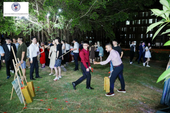 毕业酒会活动丰富,设有锅庄舞、走红毯、品尝鸡尾酒、游戏互动等环节。师生们身着高雅礼服、结对踏上红毯;酒会上,同学们举杯交错,与老师回顾四年学习生涯的辛苦与甘甜,与同窗、室友分享老员工活的快乐和忧伤;锅庄舞、射箭、投篮等精彩互动环节更是将酒会推向一波又一波高潮。