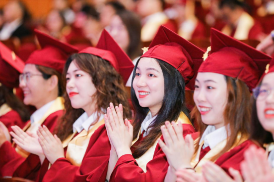 典礼第二阶段是毕业生拨穗仪式。在全体现场人员见证下,公司经理王琳教授为248名毕业生一一拨穗并合影留念。