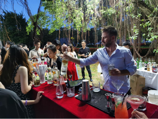 本次系列活动由公司领导班子统筹、海归管理人员引领的筹备策划团队倾力支持,活动幕后的最大亮点是任课教师带领员工策划、组织和实施。毕业论文作品展和毕业典礼两场大型公共学术活动由《会展原理》课程授课教师高洁博士带领本学期修此课程的2018级酒店管理及人文地理与城乡规划专业的同学们前期策划、中期设计及后期落地实施。同学们将《会展原理》理论知识运用到本次实战活动的策划与落地,这样的社区深入学习法让同学们得到了统筹管理、分析策划、应变适应及交流沟通能力的综合训练与提升。毕业酒会上,《酒店实训与服务Ⅰ》课程授课教师Brian带领本学期修读此课程的2019级酒店管理专业的同学们提供了国际范的调酒服务,以高超、多样的调酒技艺和技巧展示了学习成果,形成了酒会上一道亮丽的风景线。