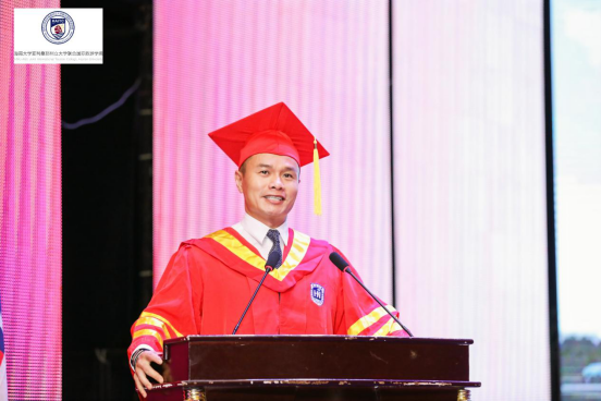 随后,亚利桑那州立大学瓦茨公共服务与社区发展公司经理柯大龙教授以及全国政协委员、观澜湖集团主席朱鼎健博士分别与同学们做了个人分享。柯大龙经理对公司有着很深厚的情感,虽然无法亲临毕业典礼,但在典礼即将结束时他还是强烈要求王琳经理配合他与毕业生们完成自拍合影留念,并戏称只有这样同学们才算真正毕业了!朱鼎健博士则向同学们分享了自己成功的经验,他激励年轻人要勇于奋斗,做个时间管理者,要敢于有梦,敢于追梦。