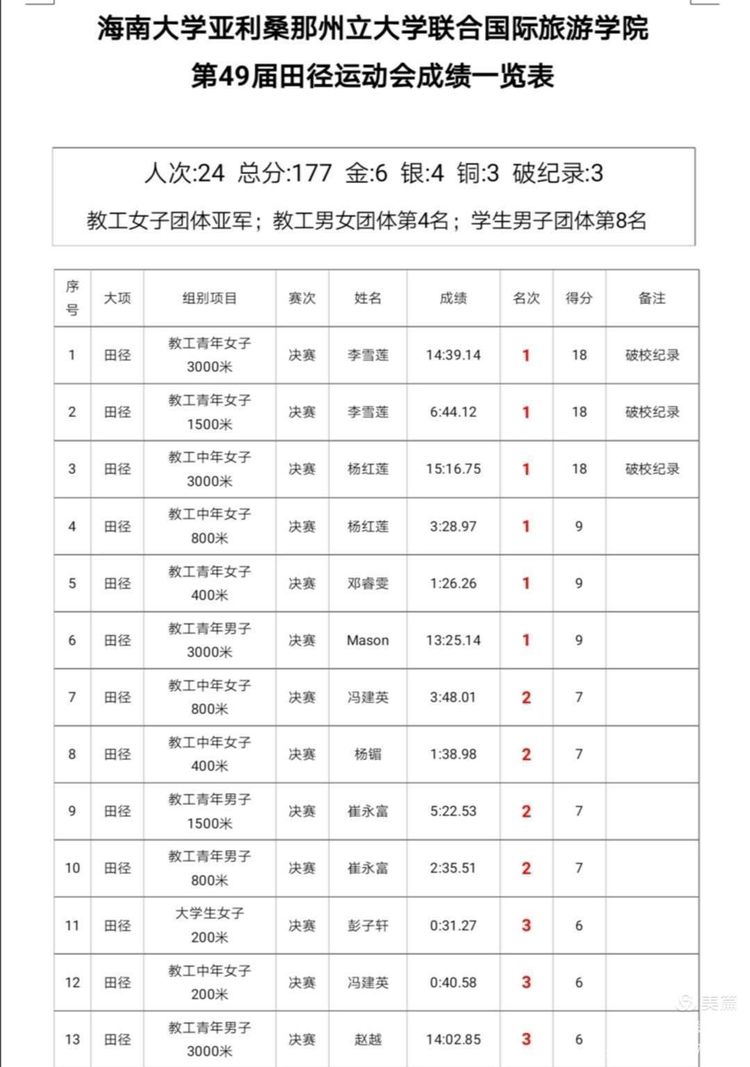 踏着深秋的韵律,迈着轻盈的步伐,我们迎来了一年一度的田径运动会。这是展示自我的舞台。来吧,尽情释放你的活力。每一次冲刺,都叩动着我们的心弦;每一次跳越,都吸引着我们的目光。我们为之呐喊,我们为你自豪。加油,HAITC的你们永远是最棒的!在师生们的团结拼搏下,国际旅游公司在本届田径运动会上勇取六金、四银、三铜,三破金沙js5588田径校运会记录!本文图文再现国际旅游公司师生于2021年11月17日至19日在金沙js5588第49届田径运动会上团结拼博的感人故事