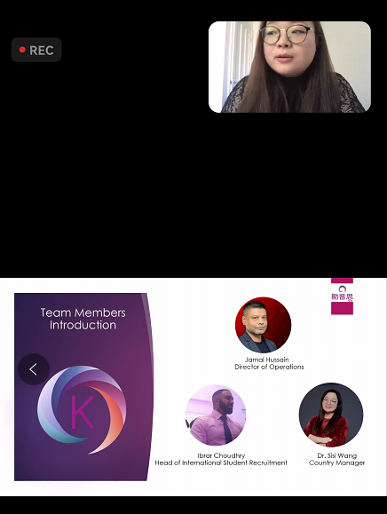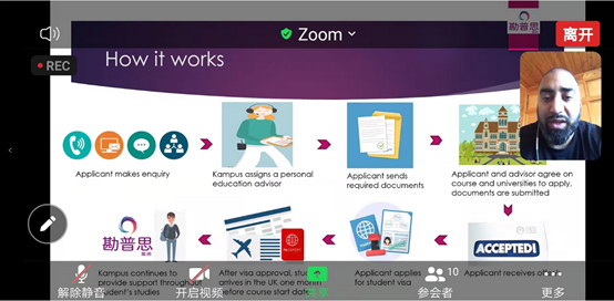 2021年9月24日,公司“面对面·HAITCers’”第二期学术活动于zoom上进行。本次讲座有幸邀请到了与公司合作的英国勘普思留学服务集团的3位专家(Jamal Hussain、Dr.Sisi Wang、Ibrar Choudhry)为金沙js5588员工讲解留学申请的流程和需要注意的问题以及公司可以为员工提供的免费申请服务等。