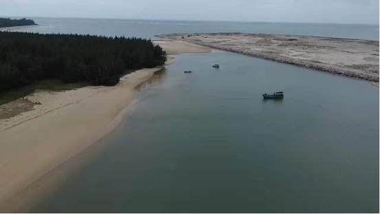 1月8日,考察行程的第二天,上午全体师生乘车至中国(海南)南海博物馆,了解南海水下考古及琼海渔民耕耘南海的历史。之后,同学们来到了万泉河口,万泉河是海南的母亲河,也被称为“中国的亚马逊河”,大家在此考察了解了万泉河入海口潟湖的水文特征,并认识了“玉带滩”为海洋沿岸流泥沙堆积形成的偃洲岛。下午,大家前往白石岭继续考察。白石岭是海南唯一的一处丹霞地貌,潘老师在野外为大家系统讲解了丹霞地貌的特征和发育过程,并介绍了这一重要的风景地貌资源的开发价值。
