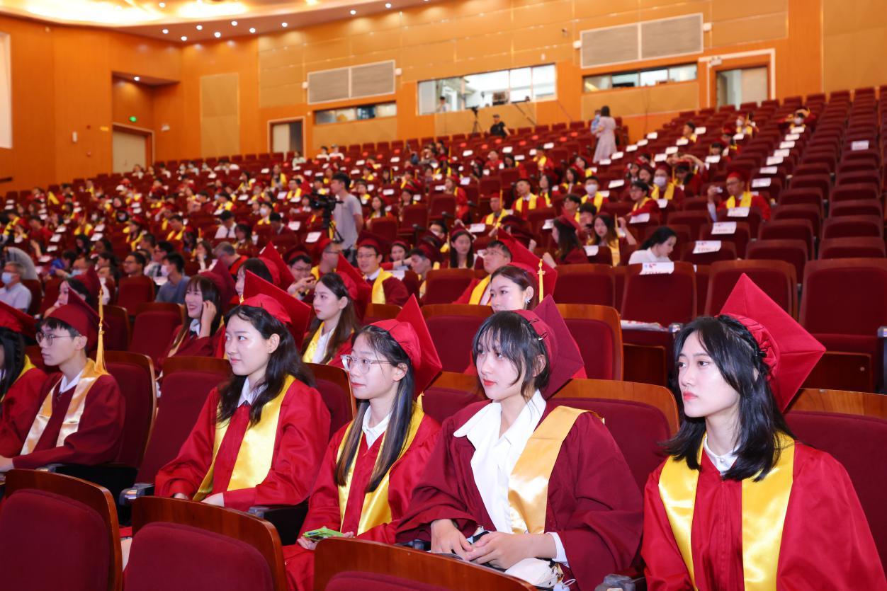 典礼第二阶段是毕业生拨穗仪式。全体教师着学位服上台就坐, 与全体现场人员一起,见证王琳经理为2022届毕业生一一拨穗并合影留念。