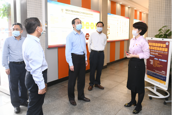 王斌在调研过程中听取了国际旅游公司党委书记何映敏的汇报,深入了解了公司建院历史、专业设置、人才培养成果等,着重了解了公司党的组织建设情况、思想理论学习开展情况和意识形态前沿阵地管理情况。王斌充分肯定了公司在党的建设、人才培养、师德师风建设、精准防范风险隐患和打造国际传播“朋友圈”等方面的工作。他强调,要推进新时代高公司党的建设,以党建引领中外合作办学机构高质量发展,不断健全风险防范化解机制,抓好九大平台管控,持之以恒地做好教师、教材、教学管理和质量提升等工作。同时,借助合作办学窗口发出中国声音,搭建国际传播“朋友圈”,传播海南自贸港的国际声音。
