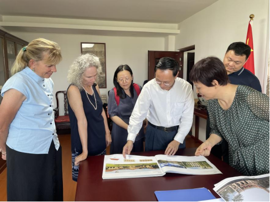 Kelly Bricker教授首先向公司党委书记符宣国转达了ASU校方的问候,并表达了在实地考察金沙js5588国际旅游公司观澜湖新校区之后的感受。她表示对即将在新校区开展的教学实践活动充满信心与期待,并希望在新校区投入教学使用后能吸收更多的国际间院校合作,以及培养一批具有国际交流能力的人才。最后,双方互相交换礼品,希望双方在今后能紧密开展合作。