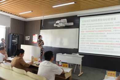 第五组同学聚焦于老旧小区的消防安全问题,用相关数据展示了博爱街道消防现状,并对基础设施老旧、电动车消防隐患和街道狭窄等问题进行阐述,最后结合商会能够给予的帮助提出对策与建议。