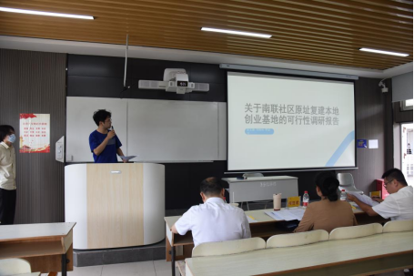 第四组同学对南联社区的概况和海口市创新创业基地的现状进行了分析,随后通过详细介绍创业基地资金来源和安置补贴,以及创业园区未来发展规划为基层社区创业基地的建设提供了新方向。