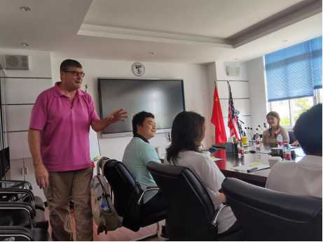 讲座结束之后,在公司的带领下,哈罗公学参观了国际旅游公司田家炳楼,并向他们介绍发展历史、科研成果、员工工作、以及创新创业成绩。他们表示对校园环境以及教学氛围十分喜欢,并且希望以后能实地感受国际旅游公司的课外实习,例如环岛实习,西北研学等项目。哈罗公学海口公司升学指导总监Christopher Beinor也表示此次国际旅游公司举办的大学认知之旅让员工们收获良多,并让双方院校之间的联系更加紧密。