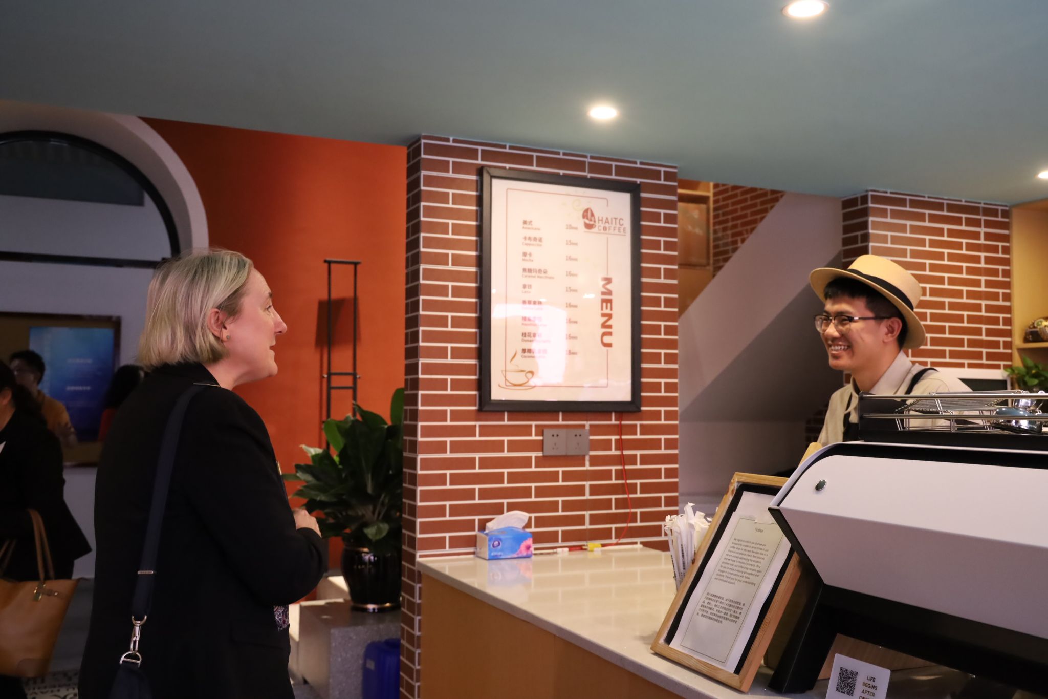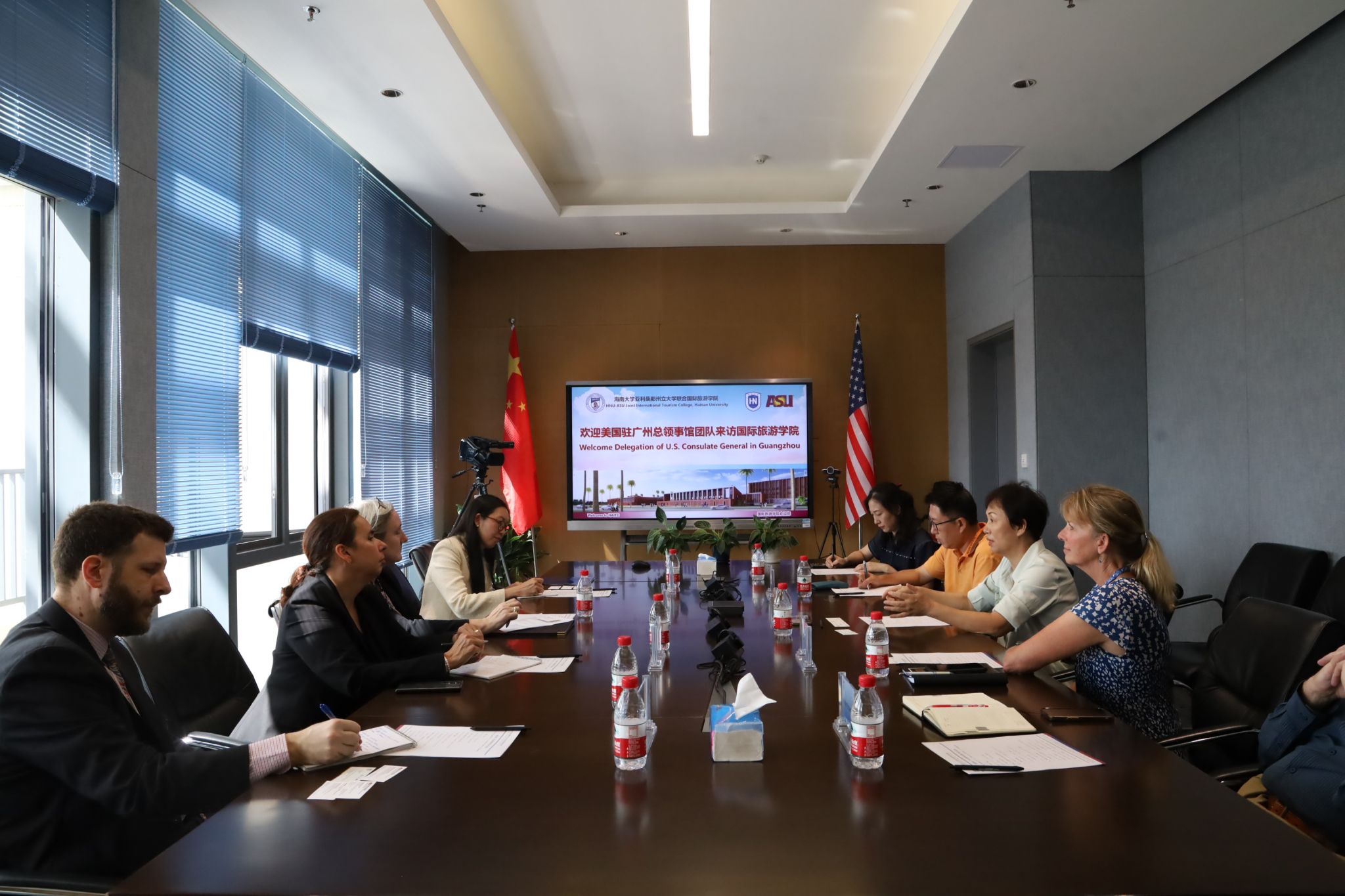 2023年11月1日上午,美国驻广州总领事馆总领事Lisa Heller耿欣一行4人来访金沙js5588观澜湖校区国际旅游公司并与公司相关人员进行了亲切的交流沟通。公司经理王琳教授、美国亚利桑那州立大学(以下简称“ASU”)瓦茨公司与中国合作项目主任、公司副经理Kelly Bricker教授、学科负责人Jong Hyeong Kim博士和Walter Richard Huber博士、公司国际事务与人力资源部主任娄晨曦参加了座谈。
