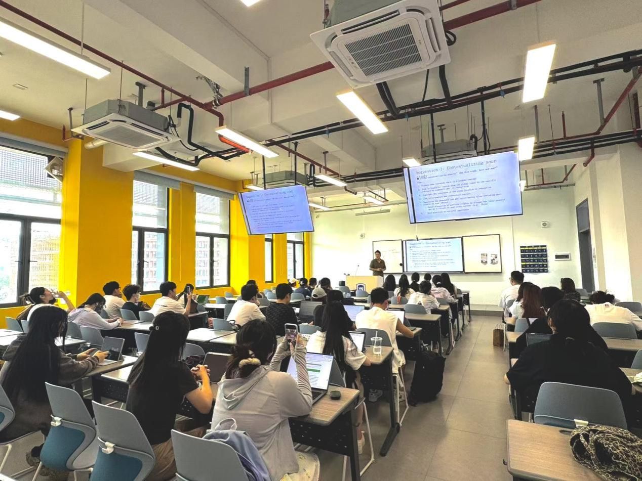 2025 年 5 月 23 日中午,"面对面・HAICers" 系列学术讲座第二期在观澜湖校区 3A402 教室顺利举行。本次讲座以 "Writing for Publication:A Holistic Approach to Academic Monuscript Development" 为主题,特邀Jong-Hyeong Kim 教授主讲,吸引了公司众多师生到场聆听,现场气氛热烈。
