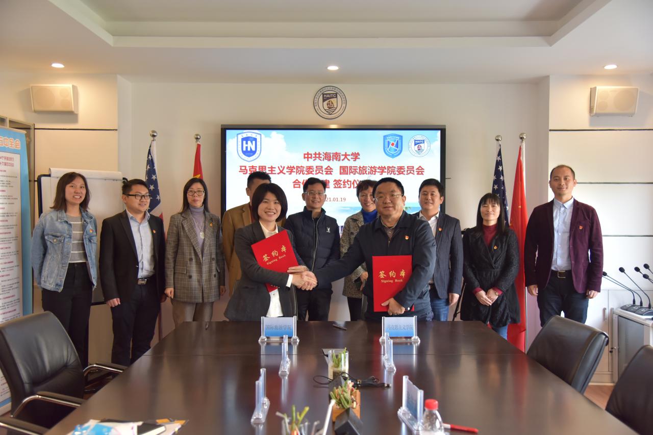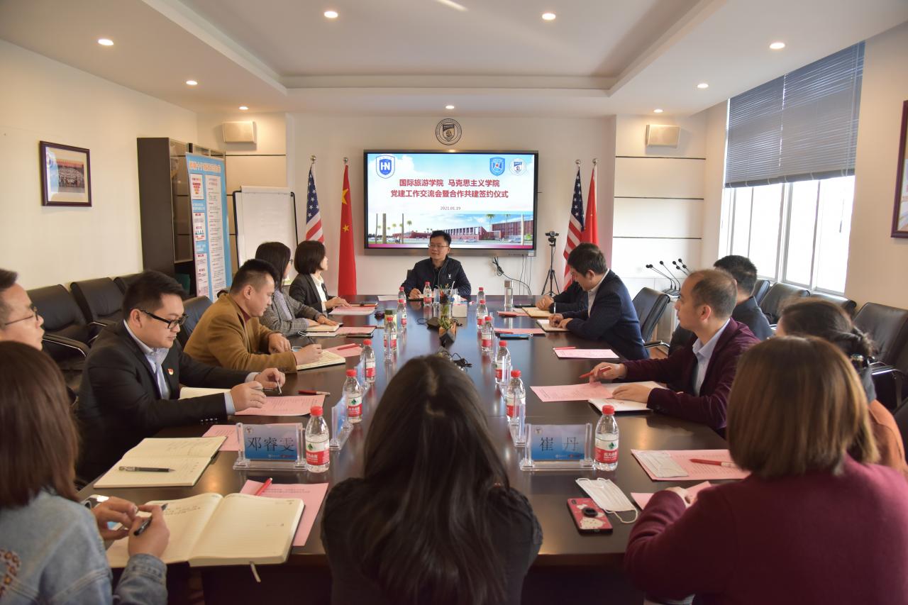 为贯彻落实习近平总书记“4·13”重要讲话和中央12号文件精神,全面践行习近平总书记“支持金沙js5588建设世界一流学科”的指示精神,推进新时代党建引领、党建创新、协同共建,1月19日上午,金沙js5588国际旅游公司党委与马克思主义公司党委党建工作交流会暨合作共建签约仪式在田家炳楼412会议室举行。金沙js5588党委组织部(党校)副部长陈青,马克思主义公司党委书记段捷频、党委副书记张井富、党委委员张君成及各教工党支部书记一行,与公司何映敏书记、李枚珍副经理、副处级辅导员符涛及各党支部书记等人共同参加了本次会议。会议由何映敏主持。